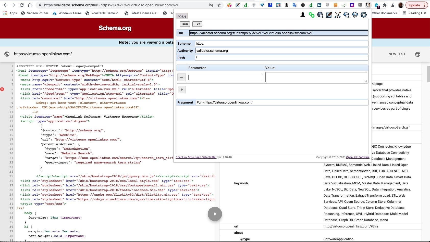 New REST-console in OpenLink Structured Data Sniffer (OSDS) offers complete Hyperlink deconstruction and tweaking, as demonstrated via attached screenshots depicting SchemaMV usage that pivots across pages about our Virtuoso and Oracle, ODBC, JDBC Drivers / Connectors. More…