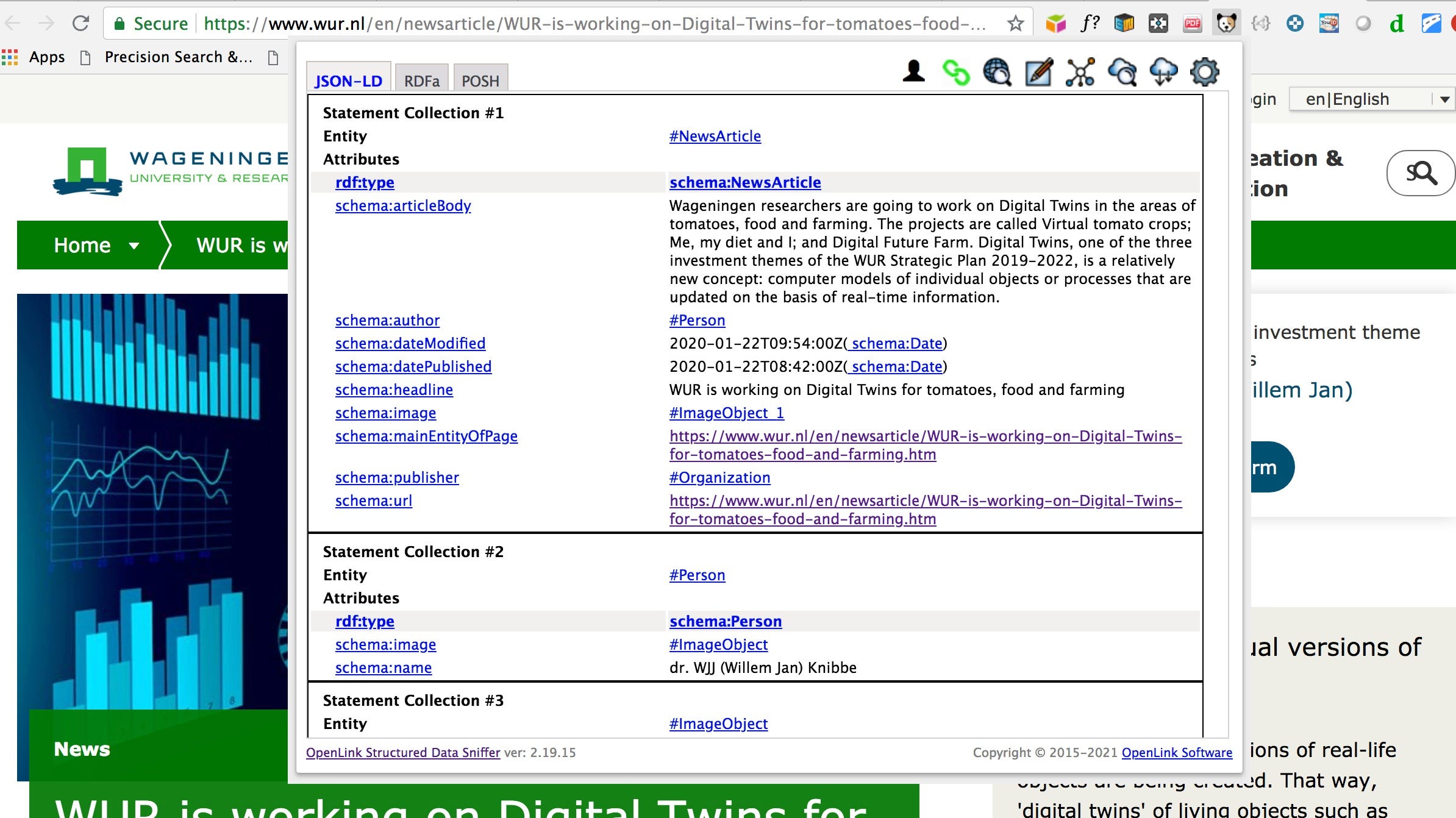 OpenLink Structured Data Sniffer (OSDS) powers this demo of follow-your-nose Linked Data Knowledge Graph creation & exploration from a Digital Twin project at Wageningen U&R (@WUR). More…